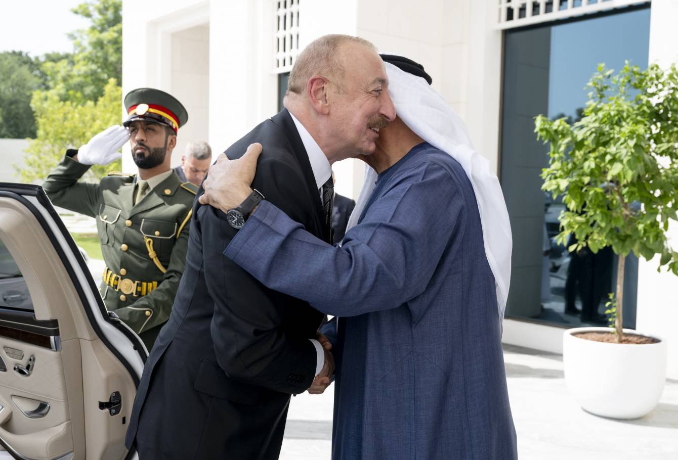 Görüşün sonunda dövlətimizin başçısı Birləşmiş Ərəb Əmirliklərinin Prezidentinə xatirə hədiyyəsi təqdim etdi.