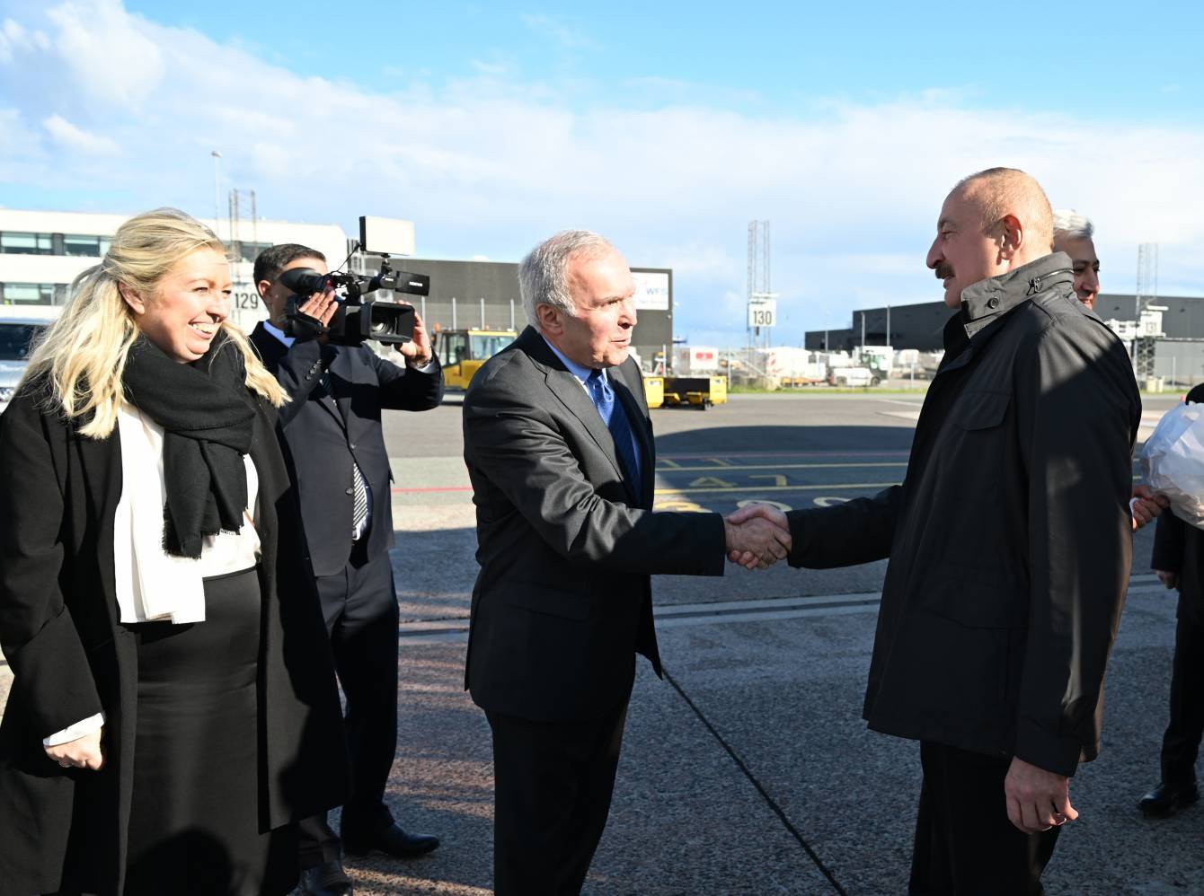 Kopenhagen şəhərinin beynəlxalq aeroportunda Prezident İlham Əliyevi və birinci xanım Mehriban Əliyevanı rəsmi şəxslər qarşılayıblar.
