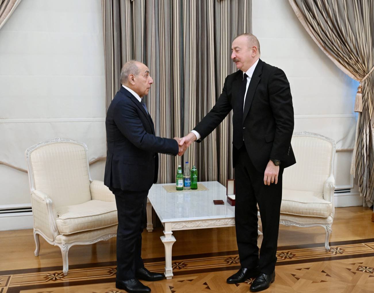 Prezident İlham Əliyev “İstiqlal ”ordenini Yaqub Eyyubova təqdim edərək dedi: Sizi təbrik edirəm.